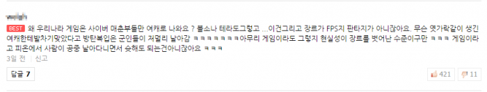한편 네티즌들은 게임 속에서 연출 되는 야한 장면의 스크린샷을 찍어 공유하며 비판하고 있다.
