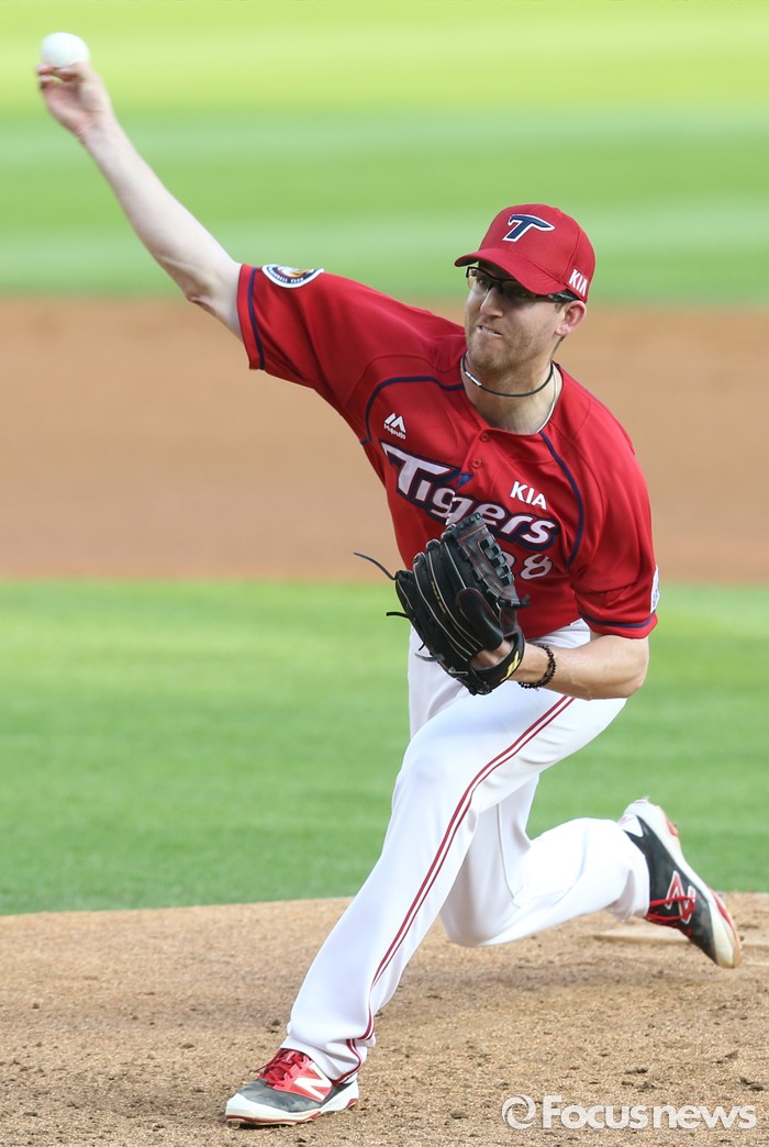 (서울=포커스뉴스) 8일 서울 잠실구장에서 열린 2016 프로야구 KIA-두산 경기에서 1회말 KIA 선발투수 지크가 투구하고 있다.
