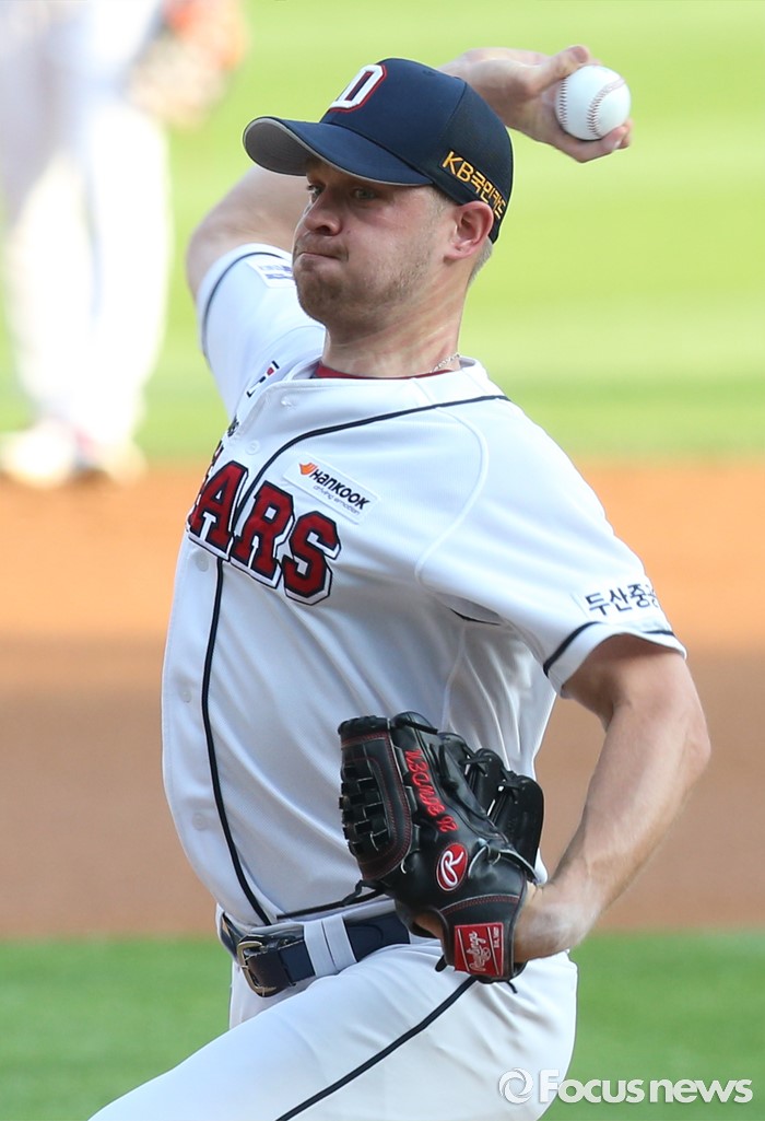 (서울=포커스뉴스) 8일 서울 잠실구장에서 열린 2016 프로야구 KIA-두산 경기에서 1회초 두산 선발투수 보우덴이 투구하고 있다.
