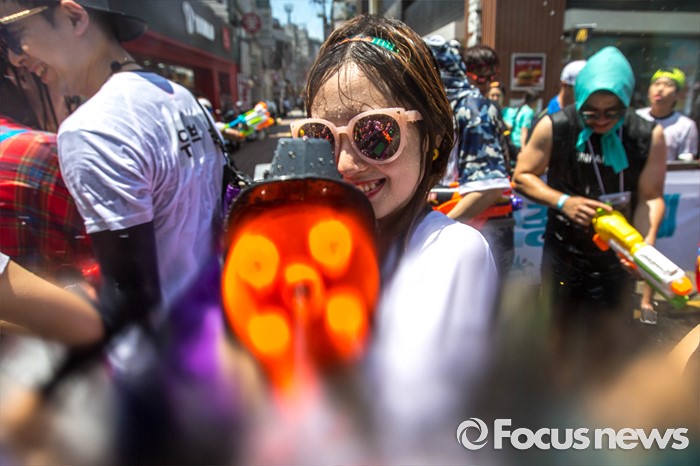 (서울=포커스뉴스) 9일 오후 서울 서대문구 신촌 연세로에서 열린 '2016 물총축제' 에 참가한 시민들이 서로 물총을 쏘며 즐거운 시간을 보내고 있다.