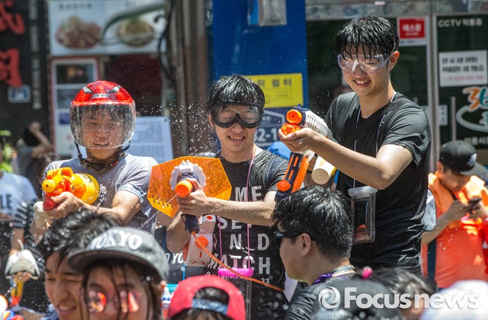 (서울=포커스뉴스) 9일 오후 서울 서대문구 신촌 연세로에서 열린 '2016 물총축제' 에 참가한 시민들이 서로 물총을 쏘며 즐거운 시간을 보내고 있다.