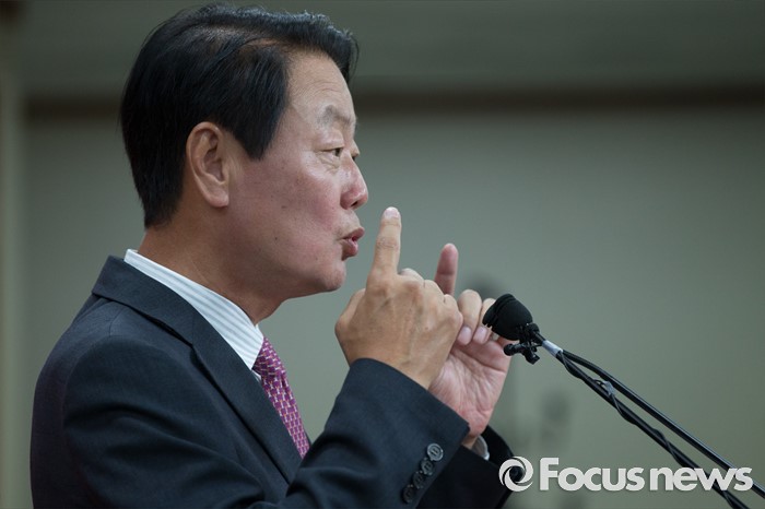 (서울=포커스뉴스) 10일 오후 서울 영등포구 새누리당 당사에서 한선교 새누리당 의원이 당대표 출마 기자회견을 하고 있다.