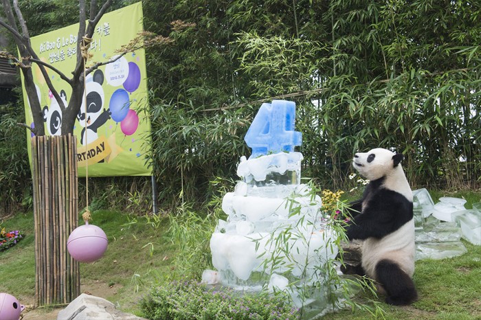 (서울=포커스뉴스) 10일 오전 경기도 용인시 에버랜드에서 판다 러바오(수컷·2012년 7월 28일생)와 아이바오(암컷·2013년 7월 13일생)의 네 번째와 세 번째 생일 잔치가 열렸다. 에버랜드는 오는 28일까지 판다 생일주간으로 지정해 각종 이벤트 행사를 진행한다. <사진제공=에버랜드>