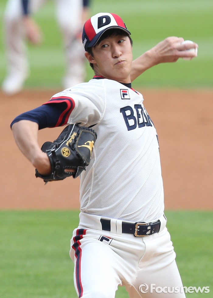 (서울=포커스뉴스) 10일 서울 잠실구장에서 열린 2016 프로야구 KIA-두산 경기에서 1회초 두산 선발투수 허준혁이 투구하고 있다.