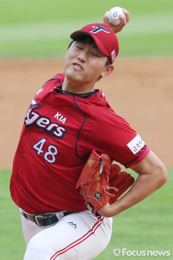 (서울=포커스뉴스) 10일 서울 잠실구장에서 열린 2016 프로야구 KIA-두산 경기에서 1회말 KIA 선발투수 홍건희가 투구하고 있다.
