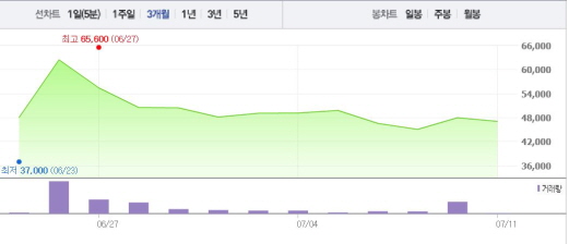 녹십자랩셀은 세포 치료 전문기업으로 면역세포의 하나인 NK세포를 이용한 항암제 개발과 줄기세포 치료제 개발에 집중하고 있다.주가흐름<사진출처=네이버 캡쳐>