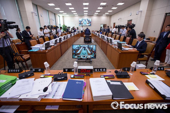(서울=포커스뉴스) 11일 오전 서울 여의도 국회에서 열린 교육문화체육관광위원회 전체회의가 '개돼지 발언 논란'을 일으킨 나향욱 교육부 정책기획관 출석 요구 공방으로 정회 되고 있다.