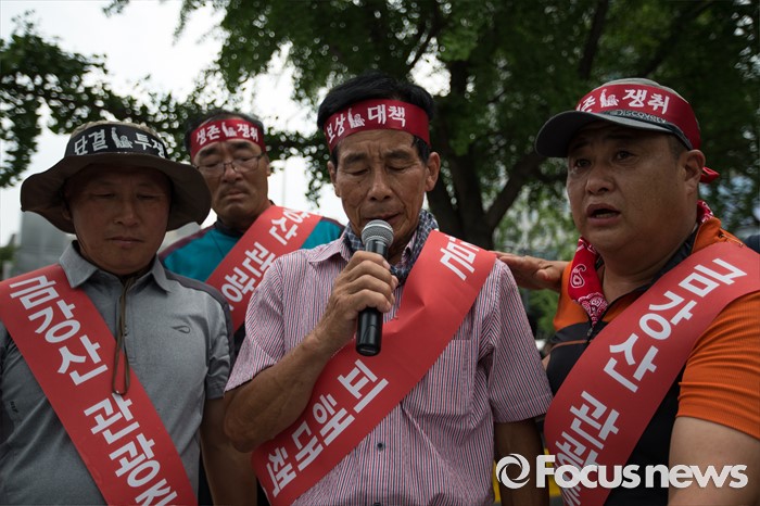(서울=포커스뉴스) 금강산관광 중단 8년째를 맞아 금강산관광 중단 피해대응 고성군 추진위원회 회원들이 11일 오후 서울 종로구 서울정부청사앞에서 지원대책 마련을 촉구하며 집회를 갖고 있다.