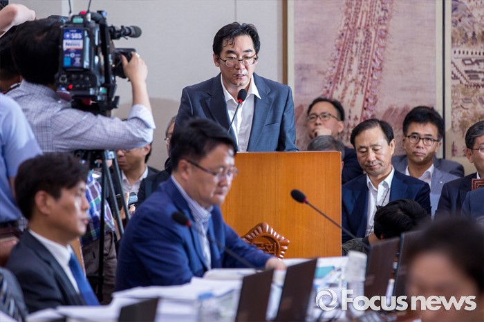 (서울=포커스뉴스) 민중을 개, 돼지로 표현한 발언으로 비판을 받고 있는 나향욱 교육부 정책기획관이 11일 오후 서울 여의도 국회에서 열린 교육문화체육관광위원회 전체회의에 참석해 교문위원들 질의에 답하고 있다.