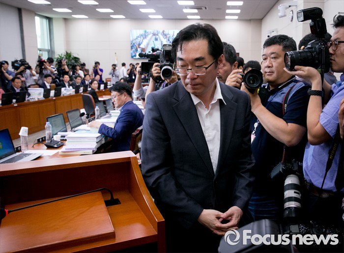 (서울=포커스뉴스) 11일 오후 서울 여의도 국회에서 열린 교육문화체육관광위원회 전체회의에 "민중은 개·돼지"라고 발언해 물의를 빚은 나향욱 교육부 정책기획관이 참석해 의원들의 질의에 답하기 위해 단상으로 향하고 있다.