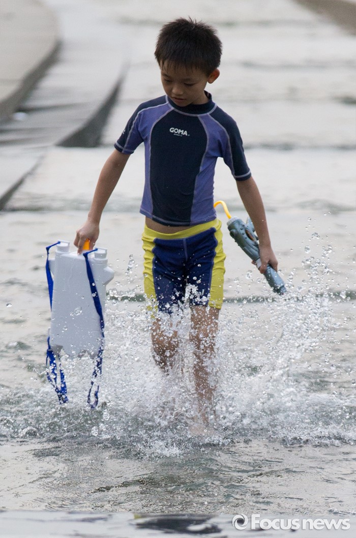 (서울=포커스뉴스) 올해 들어 첫 열대야가 발생한 11일 오후 서울 여의도 한강공원을 찾은 시민들이 더위를 피해 물놀이를 하고 있다.
