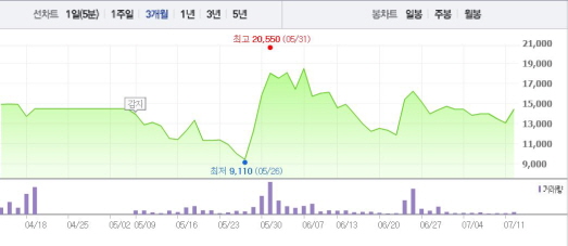 현대상선은 대만 항만공사와의 협력으로 1만8000TEU급 초대형 컨테이너선을 처리할 수 있는 초대형 겐트리 크레인 4대를 확보했다고 발표했다. 이를 통해 대만 카오슝 터미널 ‘KHT(Kaohsiung Hyundai Terminal)’의 처리 능력이 대폭 늘어날 것으로 보인다.주가흐름<사진출처=네이버 캡쳐>