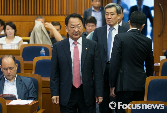 (서울=포커스뉴스) 12일 오전 서울 여의도 국회 헌정기념관에서 열린 글로벌금융학회 정책심포지엄에 유일호 경제부총리 겸 기획재정부 장관 등 참석자들이 행사장으로 향하고 있다.
