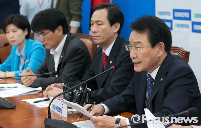 (서울=포커스뉴스) 12일 오전 서울 여의도 국회에서 열린 더불어민주당 원내대책회의에 참석한 변재일 정책위의장이 모두발언을 하고 있다.
