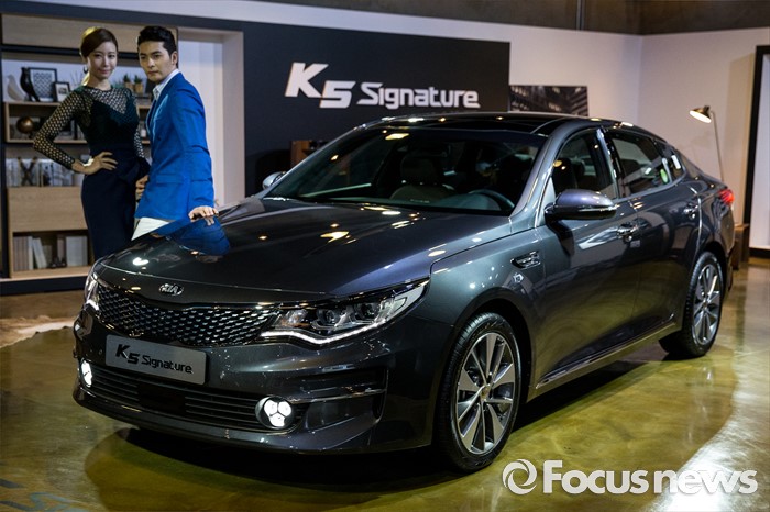 (서울=포커스뉴스) 12일 오전 서울 강남구 인터와이드 스튜디오에서 열린 '2017 K5, K5 PHEV' 출시 사진 및 영상 발표회에 K5 'Signature' 차량이 전시되어 있다.