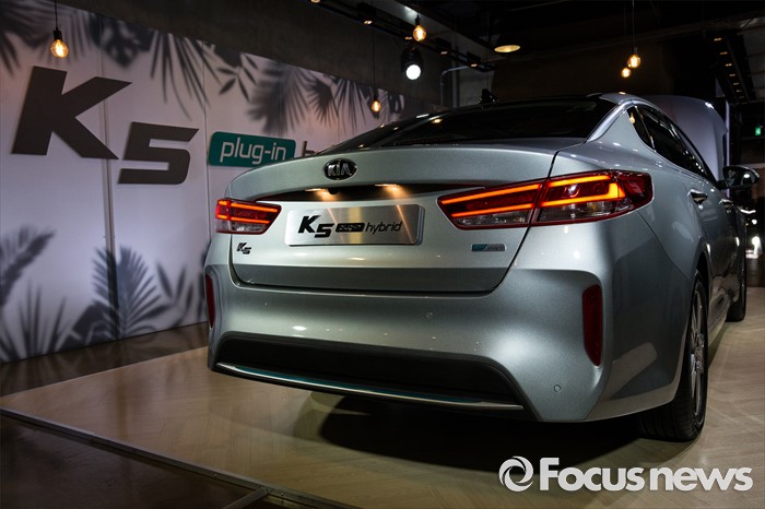 (서울=포커스뉴스) 12일 오전 서울 강남구 인터와이드 스튜디오에서 열린 '2017 K5, K5 PHEV' 출시 사진 및 영상 발표회에 K5 'PHEV' 차량이 전시되어 있다.