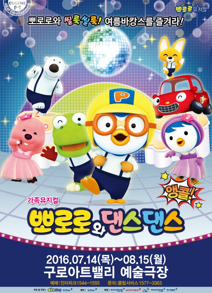 먼저, '뽀로로와 댄스댄스'는 오는 14일부터 다음달 15일까지 서울 구로아트밸리에서 누적관객 2만명 돌파를 기념하는 앵콜공연을 실시한다.