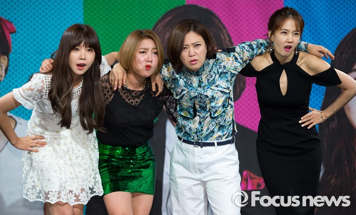 (서울=포커스뉴스) 12일 오전 서울 마포구 MBC상암사옥에서 열린 MBC every1 '비디오스타' 제작발표회에 참석한 가수 차오루(왼쪽부터), 개그우먼 박나래, 김숙, 방송인 박소현이 포토타임 갖고 있다.