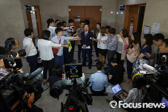 | △ 취재진 질문에 답하는 이장우 새누리당 의원 |