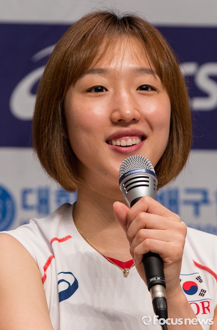 (진천=포커스뉴스) 12일 오전 충북 진천 선수촌 대강당에서 열린 '대한민국 여자배구 국가대표선수단 기자회견'에 참석한 황연주 선수가 각오를 밝히고 있다. 이날 기자회견을 가진 여자배구 선수단은 리우올림픽을 대비해 23일 네덜란드로 전지훈련을 떠날 계획이다.