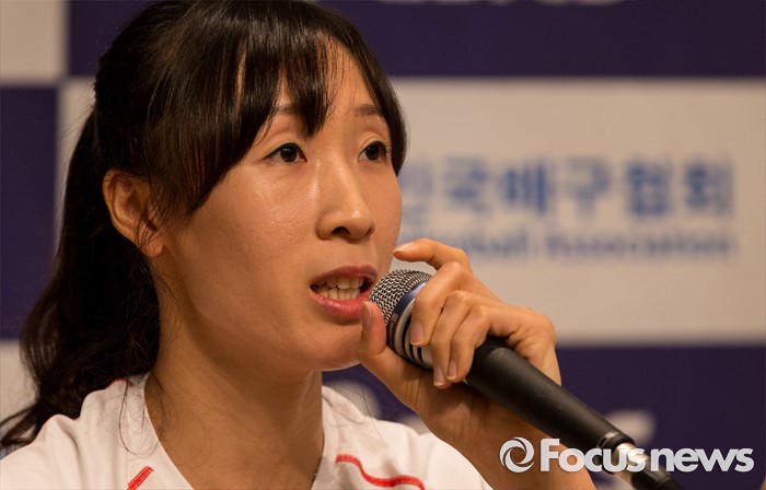 (진천=포커스뉴스) 12일 오전 충북 진천 선수촌 대강당에서 열린 '대한민국 여자배구 국가대표선수단 기자회견'에 참석한 이효희 선수가 각오를 밝히고 있다. 이날 기자회견을 가진 여자배구 선수단은 리우올림픽을 대비해 23일 네덜란드로 전지훈련을 떠날 계획이다.