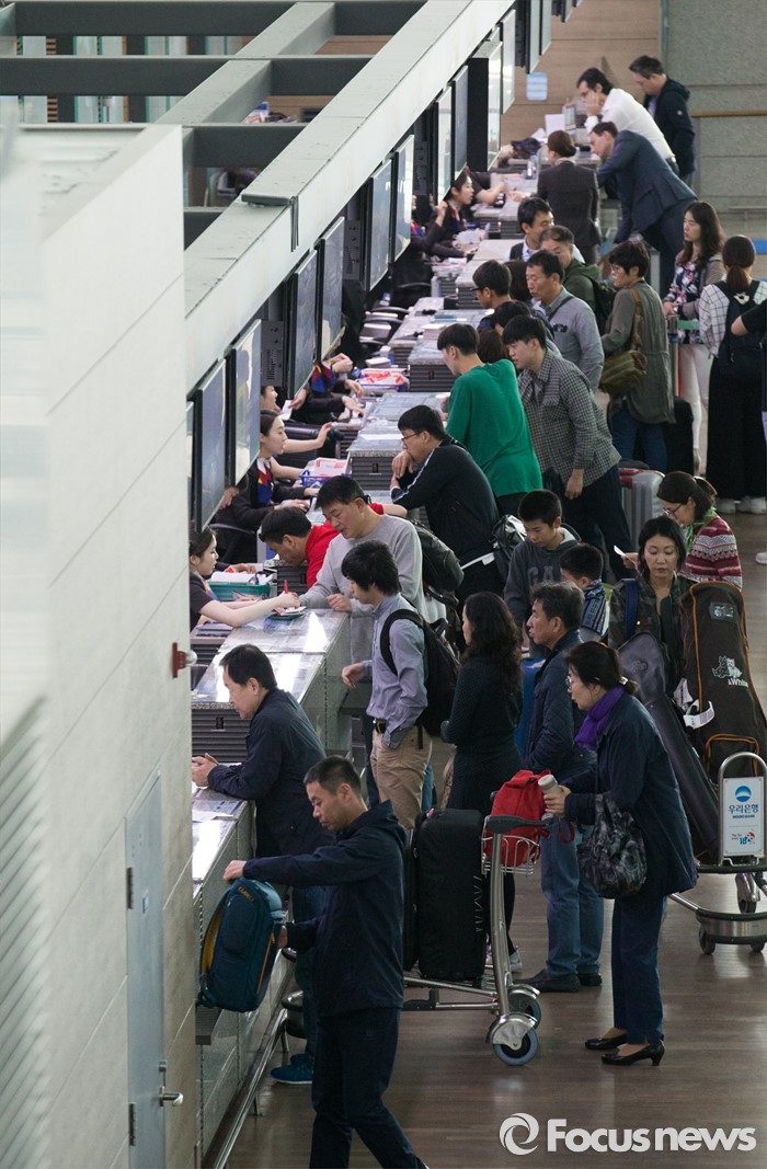 국토부 관계자는 “이번 보호기준 제정‧시행에 따라 항공분야에서 소비자 보호가 획기적으로 강화될 것으로 기대하고 있다“며 “앞으로도 지속적 제도개선을 통하여 항공서비스에 대한 국민신뢰를 높여가겠다“고 말했다.(인천공항=포커스뉴스) 4일 오전 인천국제공항 출국장에 황금연휴를 앞두고 출국하는 여행객들이 탑승 수속을 밟고 있다. 2016.05.04 오장환 기자