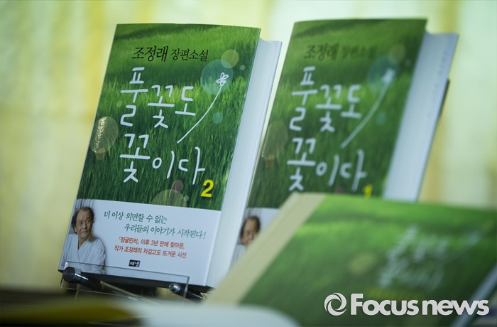 (서울=포커스뉴스) 12일 오전 서울 중구 한국프레스센터에서 열린 조정래 작가의 신간 출간기념 기자간담회에 조 작가의 신간인 '풀꽃도 꽃이다' 책들이 놓여져 있다.
