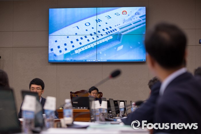 (서울=포커스뉴스) 12일 오전 서울 여의도 국회에서 열린 '농림축산해양수산위원회 전체회의'에서 세월호 인양 계획이 담긴 영상이 공개되고 있다.