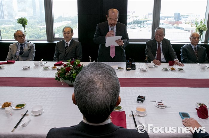 (서울=포커스뉴스) 김희옥 새누리당 혁신비대위원장이 12일 오후 서울 여의도 한 중식당에서 열린 상임고문단 오찬에 참석해 김수한 상임고문의 인사말을 듣고 있다.