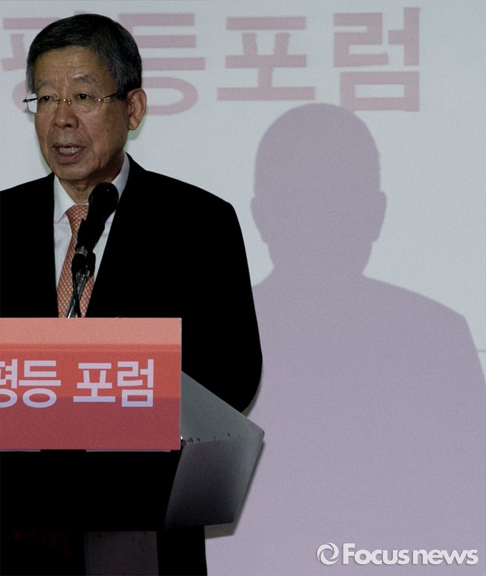 (서울=포커스뉴스) 김희옥 새누리당 혁신비대위원장이 12일 오후 서울 여의도 중소기업중앙회에서 열린 2016 양성평등 포럼에 참석해 축사를 하고 있다.