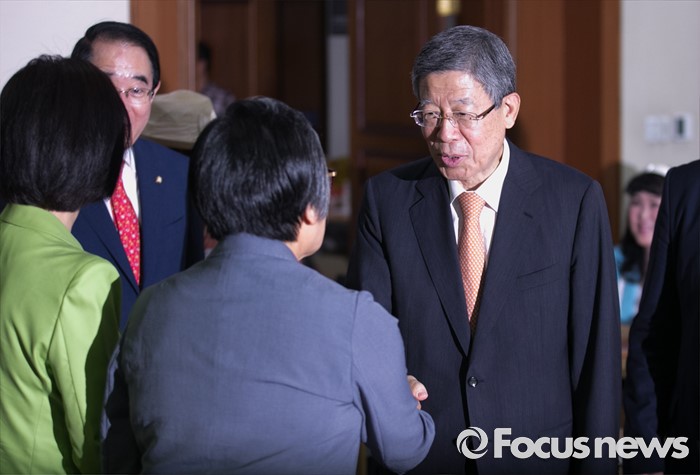 (서울=포커스뉴스) 김희옥 새누리당 혁신비대위원장이 12일 오후 서울 여의도 중소기업중앙회에서 열린 2016 양성평등 포럼에 참석해 참석자들과 인사하고 있다.