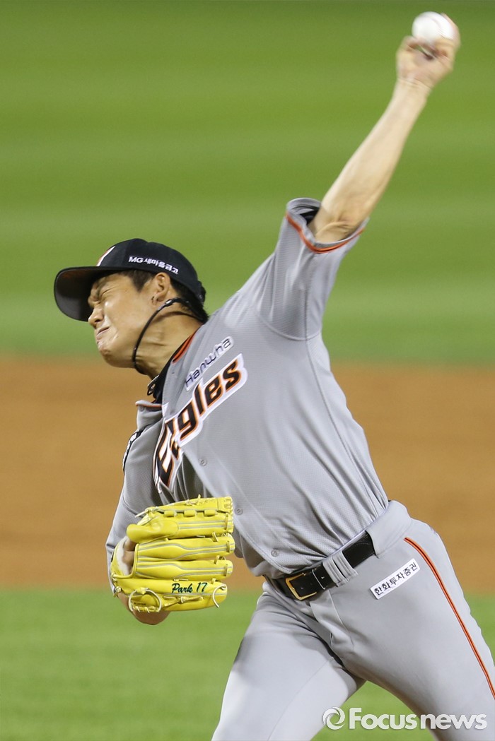 (서울=포커스뉴스) 12일 서울 잠실구장에서 열린 2016 프로야구 한화-LG 경기 4회말 무사 1,2루에서 한화 투수 박정진이 등판해 투구하고 있다.