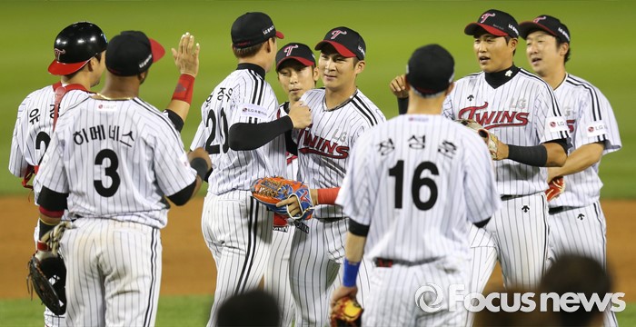 | △ 하이파이브하며 기뻐하는 LG 선수들 |