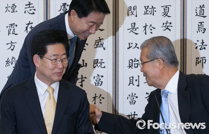 (서울=포커스뉴스) 13일 오전 서울 여의도 국회 귀빈식당에서 열린 더불어민주당 저출산 해소를 위한 국민연금 공공투자 특별위원회 1차 정책협의회에 김종인(오른쪽) 비대위 대표와 조정식(가운데) 국토교통위원장이 인사하고 있다. 왼쪽은 양승조 보건복지위원장.