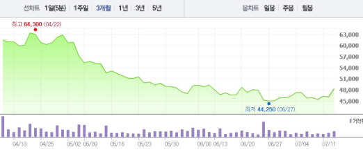 이에 배 연구원은 현대제철에 대해 투자의견 ‘매수’와 목표주가 6만7000원을 유지했다.주가흐름<사진출처=네이버 캡쳐>