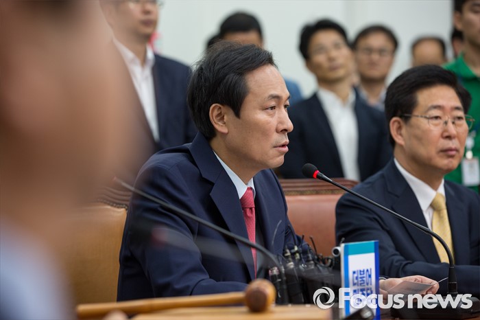 (서울=포커스뉴스) 우상호 더불어민주당 원내대표가 13일 오전 서울 여의도 국회에서 열린 비상대책위원회의에 참석해 모두발언 하고 있다.