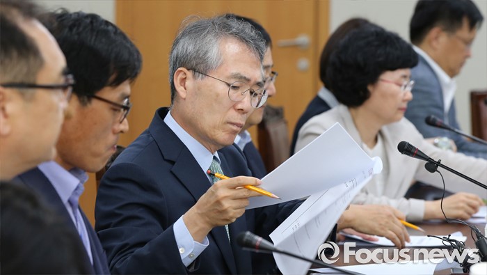 최저임금위원회의 결정이 법적 효력을 가지려면 고용노동부 장관이 고시(8월5일)하기 20일 전인 오는 16일까지 반드시 심의를 마쳐야 한다.5일 세종시 정부세종청사 고용노동부 최저임금위원회에서 열린 제9차 전원회의에서 박준성 위원장이 회의자료를 살피고 있다. 2016.07.05 김기태 기자