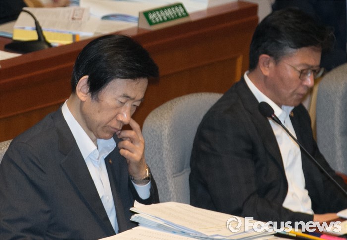 (서울=포커스뉴스) 13일 오전 서울 여의도 국회에서 열린 예산결산특별위원회 전체회의에 참석한 윤병세(왼쪽) 외교부 장관, 홍용표 통일부 장관이 자료를 살펴보고 있다.