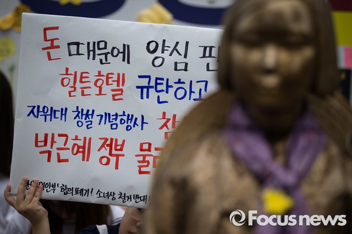 (서울=포커스뉴스) 자위대 창설 62주년 기념행사가 서울 한복판에서 열리고 하루가 지난 13일 오후, 서울 종로구 주한일본대사관 앞에서 일본군 '위안부' 문제 해결을 위한 제1239차 정기 수요집회가 열리고 있다.