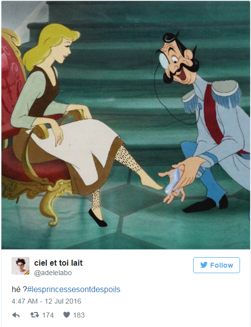 한편 프랑스 여성들의 트위터 운동에 일부 남성들은 자신들의 가슴털 사진과 애완동물 사진 등을 올리며 놀림감삼고 있다.한 트위터 이용자가 동화 '신데렐라'의 다리에 털을 그린 그림을 #LesPrincessesOntDesPoils(동화 속 공주도 털이 있다)해시태그와 게시해 여성의 제모하지 않을 권리를 주장하고 있다. <사진출처=트위터 갈무리>프랑스 여성들 사이에서 제모 하지 않은 여성의 사진을 게시하며 '제모하지 않을 권리'를 주장하는 온라인 운동이 퍼져 나가고 있다. <사진 출처=트위터 갈무리>
