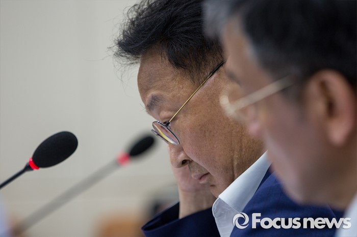 (서울=포커스뉴스) 유일호 경제부총리 겸 기획재정부 장관이 13일 오후 서울 여의도 국회에서 열린 '기획재정위원회 전체회의'에 참석해 의원들의 대우조선해양에 대한 수사자료와 회계법인의 실사보고서 제출을 요구하며 회의 시작을 미루자 난감해 하고 있다. 이날 기재위 여야 의원들은 대우조선해양과 관련된 자료를 보지 않고는 조선업 구조조정에 대한 추경예산 편성이 어렵다는 입장을 밝혔다.
