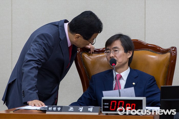 | △ 대화하는 조경태 위원장-이현재 간사 |