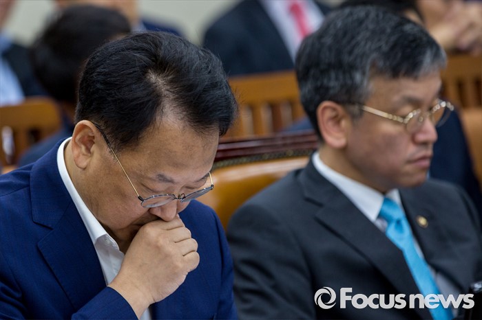(서울=포커스뉴스) 유일호 경제부총리 겸 기획재정부 장관이 13일 오후 서울 여의도 국회에서 열린 '기획재정위원회 전체회의'에 참석해 의원들의 대우조선해양에 대한 수사자료와 회계법인의 실사보고서 제출 요구하며 정상 회의 시작을 미루자 난감해 하고 있다. 이날 기재위 여야 의원들은 대우조선해양과 관련된 자료를 보지 않고는 조선업 구조조정에 대한 추경예산 편성이 어렵다는 입장을 밝혔다.