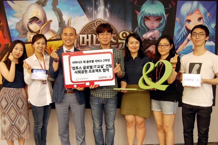 이번 컴투스 글로벌 IT교실 건립 사회공헌 프로젝트는 지난 6월 RPG '서머너즈 워: 천공의 아레나'(이하 서머너즈 워)의 글로벌 서비스 2주년 기념 이벤트를 통해 시작됐으며 전세계 유저들에게 감사를 전하고, 해외 저개발 국가의 IT교육에 힘을 보태고자 마련됐다. 이벤트는 약 2주간 유저들을 뜨거운 관심과 참여 속에 진행됐으며 공동 목표를 조기에 달성, 성공적으로 미션을 완료했다.