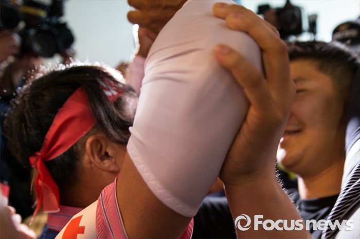 (서울=포커스뉴스) 국방부가 사드 배치 지역을 경북 성주로 확정 지은 13일 오후 서울 용산구 국방컨벤션에서 성주군민들이 군수와 국방부 관계자 면담자리에 진입을 시도하고 있다.