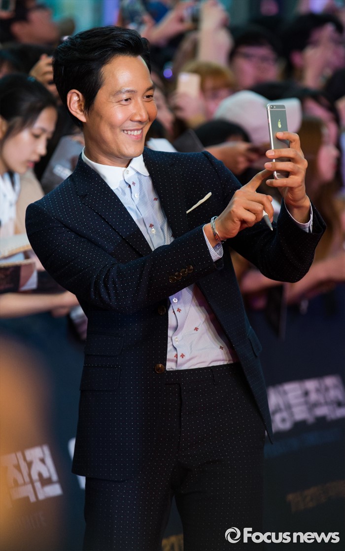 (서울=포커스뉴스) 13일 오후 서울 영등포구 타임스퀘어에서 열린 영화 '인천상륙작전' 레드카펫 행사에 참석한 배우 이정재가 팬들과 사진 찍고 있다.
