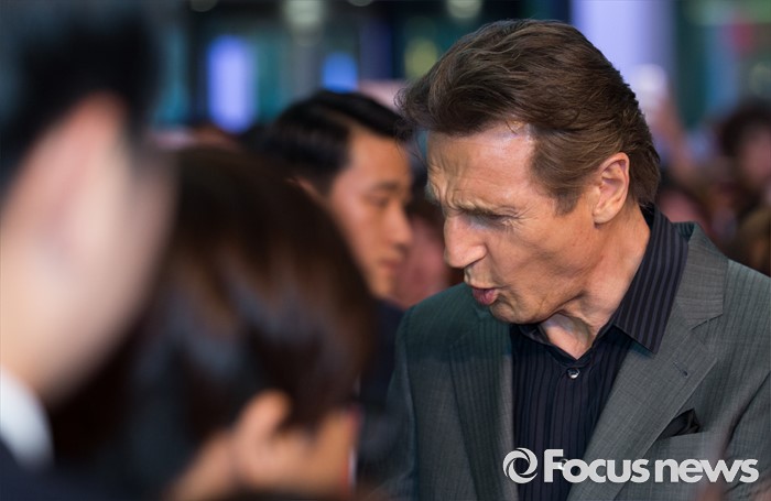 (서울=포커스뉴스) 13일 오후 서울 영등포구 타임스퀘어에서 열린 영화 '인천상륙작전' 레드카펫 행사에 참석한 배우 리암 니슨이 팬들과 대화하고 있다.
