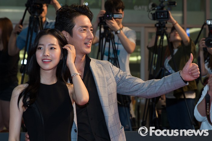 (서울=포커스뉴스) 13일 오후 서울 영등포구 타임스퀘어에서 열린 영화 '인천상륙작전' 레드카펫 행사에 참석한 배우 진세연(왼쪽)과 정준호가 포즈를 취하고 있다.