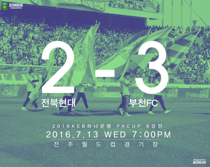 (서울=포커스뉴스) 2016 대한축구협회(FA)컵 4강 대진표가 완성됐다. K리그 클래식 선두 전북은 챌린지(2부) 부천FC에 2-3 역전패했다.