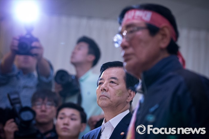 (서울=포커스뉴스) 한민구(오른쪽 두 번째) 국방부 장관이 13일 오후 서울 용산구 국방컨벤션센터에서 사드 배치에 항의 방문 중인 김항곤 성주군수 등 사회단체장 및 군민들과 만나 대화하고 있다. 국방부는 이날 경북 성주군을 고고도 미사일 방어(사드·THAAD)체계 배치 지역이라고 공식 발표했다.